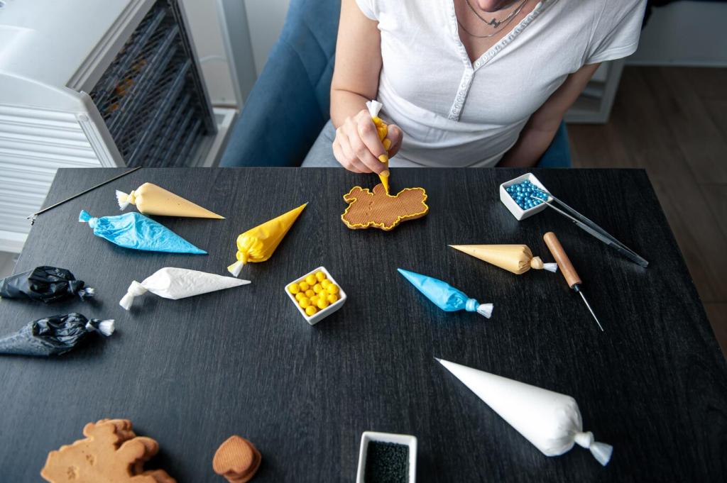 Stopfen mit auffälligen Farben und Mustern macht Löcher zu Highlights. Nutze Darning Looms oder einfache Stopfeier, um stabile Gewebe zu erzeugen. Teile deine Lieblingsmuster unten und inspiriere andere, Spuren des Lebens stolz zu zeigen statt sie zu verstecken.